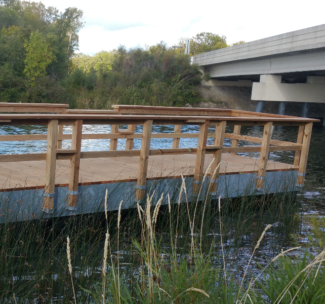 A challenged site that we utilized our boardwalk system along with a floating fishing dock to make this a favorite local fishing spot.